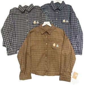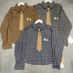 秋季新款复古设计感格子长袖衬衫韩系文艺显瘦小众休闲polo领衬衣