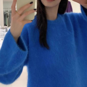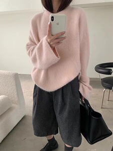 温柔风仿水貂绒毛衣女2025新款冬季软糯慵懒风宽松套头针织衫上衣