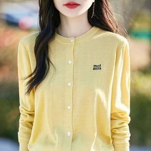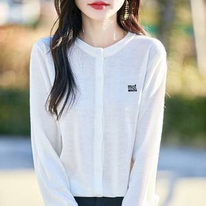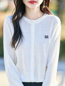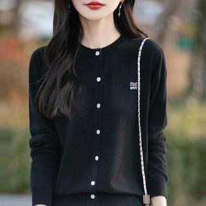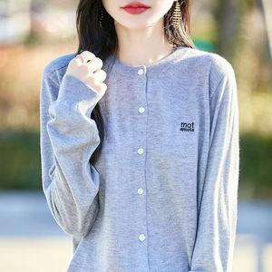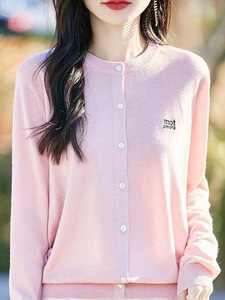 秋季新款圆领百搭针织开衫字母刺绣宽松上衣简约纯色毛衣遮肉外套