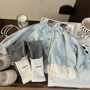 韩版童装2025新款秋季女童灯笼花苞风衣外套堆堆袜打底裤两件套潮