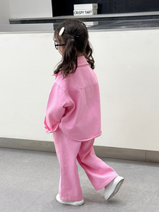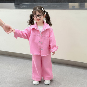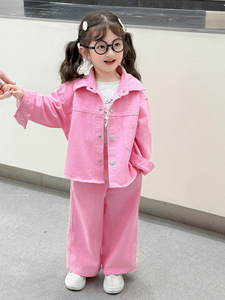 女童套装春秋2025新款女宝宝洋气时髦女孩儿童秋装牛仔衬衣两件套