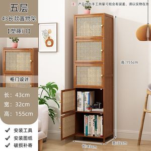 书柜带门置物架多层收纳夹缝储物柜客厅展示柜子书架靠墙电视边柜