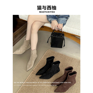 法式复古瘦瘦靴靴女外穿秋冬2025年新款配裙子尖头短靴细跟高跟靴