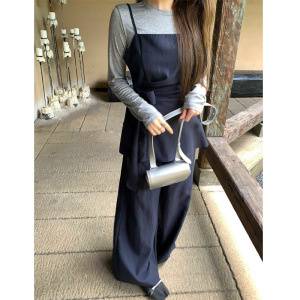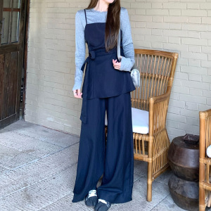 温柔韩女主 侧绑带吊带+针织上衣+垂感显瘦长裤三件套套2025秋季