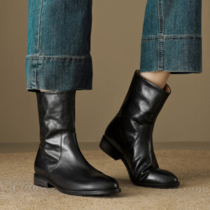 短靴平底西部牛仔靴粗跟复古马丁靴女款2025新款单靴时装靴女靴