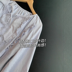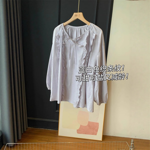 CJ981蓝白色织条纹!可甜可盐又减龄!圆领显瘦百搭衬衫小衫女25
