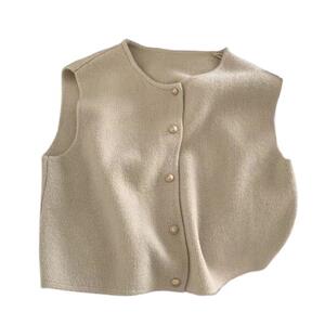 温柔系单排小金扣子圆领针织马甲开衫女韩系无袖坎肩背心上衣外搭