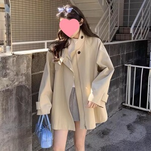 韩国秋季新款复古英伦风立领设计感小众宽松长袖风衣外套女无