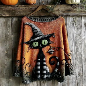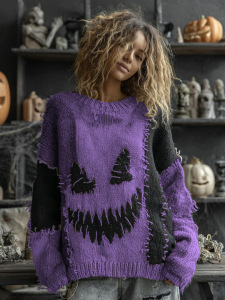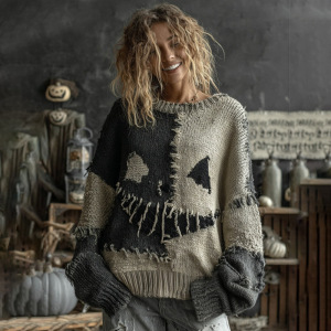 欧美万圣节爆款3D数码印花女装圆领宽松毛衣手感柔软卫衣休闲时尚