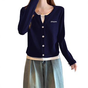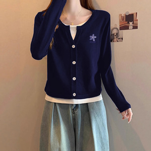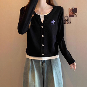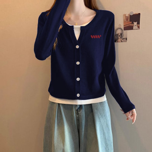 韩版撞色拼接假两件长袖T恤女早秋冬季V领设计感印花百搭开衫上衣