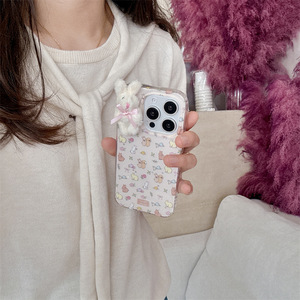 可爱满屏碎花立体毛绒兔子适用iPhone17苹果16ProMax手机壳15新款