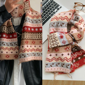 费尔岛风针织围巾女冬季高级感设计感百搭学生保暖护颈小围脖批发