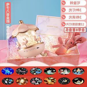 万火充电电子八音旋转21图8首音乐-投影灯送贴纸精美包