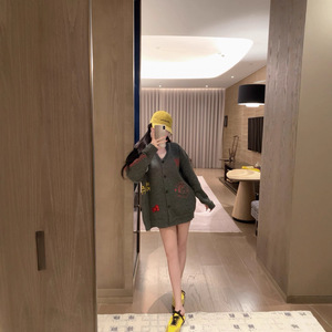 2025新款韩版宽松休闲百搭圆领长袖针织开衫女设计感小众毛衣外套
