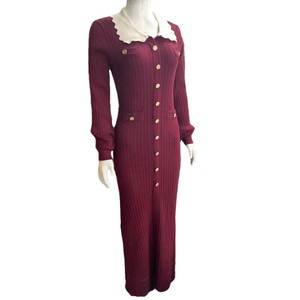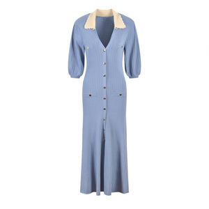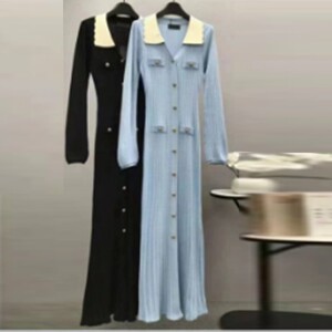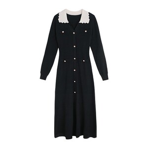 早秋新款撞色翻领长袖针织裙