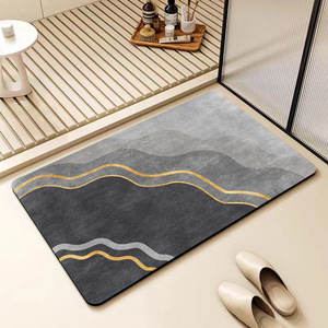 黑灰线条软硅藻泥吸水垫浴室地垫卫生间防滑速干脚垫门垫厕所地毯