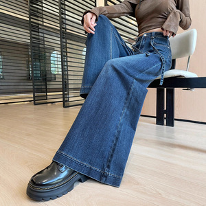 阔腿牛仔裤女2025秋季新款高腰宽松显瘦设计感直筒裤子女款A7129