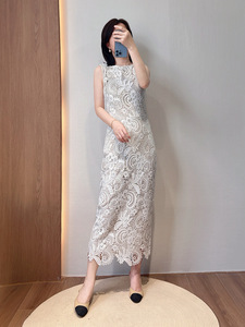现货醇wei 英式优雅 浪漫温柔圆领重工提花刺绣蕾丝背心裙气质连