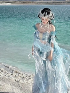 人鱼姬异域风系列人鱼公主渐变印染刺绣超仙女裙齐胸刺绣汉服爆款