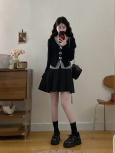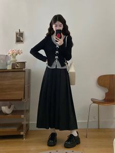 2025年秋季大码女装胖mm新款假两件显瘦蝴蝶结上衣+百褶半身裙