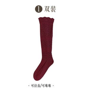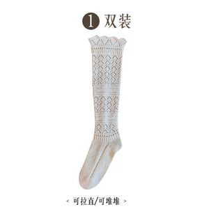 小腿袜女高筒秋冬堆堆袜复古镂空花边长袜针织毛线袜韦雪同款袜套