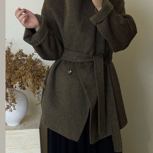 2025秋冬新款小个子双面羊绒大衣女气质大翻领宽松大码羊毛呢外套