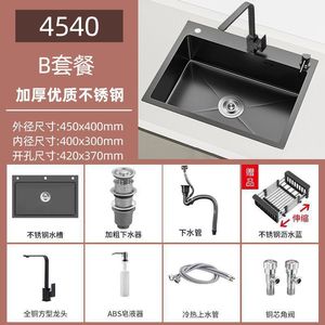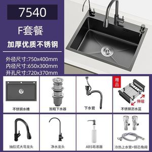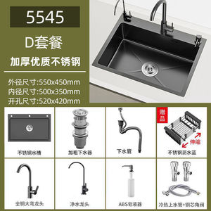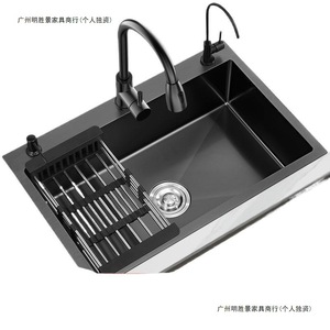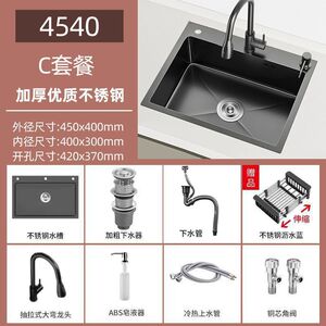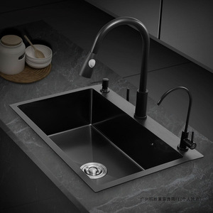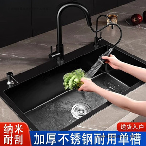 厨房家用加厚304不锈钢水槽黑色纳米大单槽洗菜盆手工谁槽台下盆