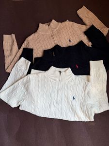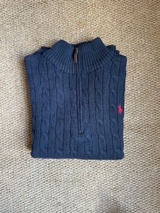 90羊毛10羊绒拉夫小马标复古半拉链绞花毛衣男女套头老钱风上衣
