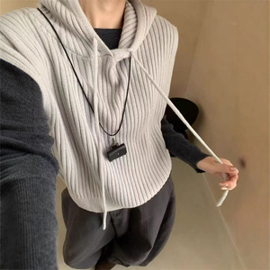 2025秋冬连帽针织马甲新款女短款外穿宽松坎肩无袖毛衣外套上衣