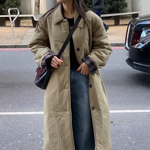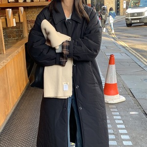 现货 感气质棉衣秋冬新款韩版宽松直筒中长过膝棉服大衣外套