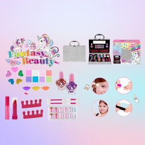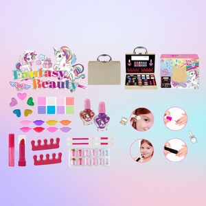 跨境儿童化妆品手提箱玩具套装小女孩生日礼物小公主彩妆盒指甲油