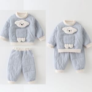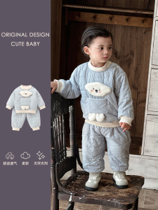 儿童套装秋冬装男女宝宝小狗家居服夹棉棉衣棉裤婴幼儿分体两件套