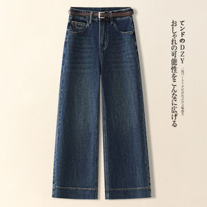 复古蓝直筒牛仔裤女春秋季2025新款宽松显瘦小个子九分裤子阔腿裤