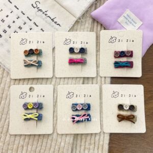 韩系秋冬毛线宝宝发夹可爱纽扣蝴蝶结鸭嘴夹婴幼儿碎发夹刘海夹