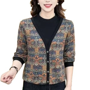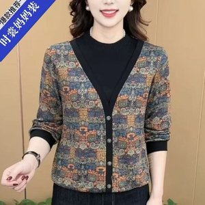 一件代发直播爆款2025秋季新款时尚假两件复古印花长袖洋气打底衫