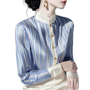 雪纺衬衣女春季新款爆款高级感超好看独特漂亮灰色撞色条纹衬衣女