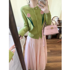 2025超火多胺巴一整套韩系减龄穿搭长袖针织毛衣开衫半身裙两件套