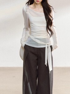 秋季新款不规则长袖防晒罩衫女宽松显瘦T恤上衣