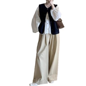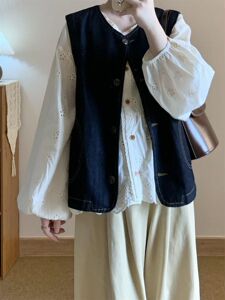 【三件套】牛仔马甲+衬衫+阔腿裤