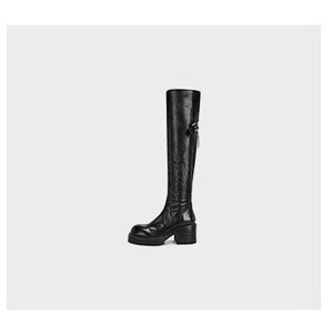 牛皮版~真皮圆头厚底长靴高筒靴女骑士靴秋冬新款粗跟复古靴