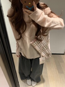 2025新款韩系早秋季氛围感穿搭粉色针织衫上衣女宽松慵懒风薄毛衣