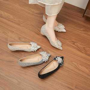 6388E-187法式蝴蝶结绝美气质尖头单鞋主婚纱新娘鞋百搭平底鞋