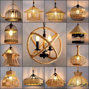 美式仿复古风loft麻绳吊灯创意服装店咖啡餐厅酒吧台工业灯具民宿