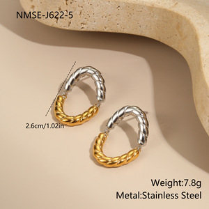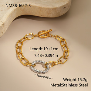 跨境欧美ins风时尚流行不锈钢项链镀18K金银拼色链条手链耳环饰品