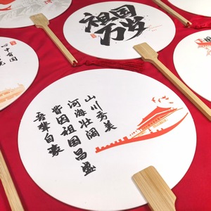 国庆节扇子爱国红色主题团扇景区摆摊活动暖场体验扇子厂家批发扇