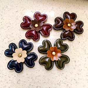 复古四叶花充棉箱包挂件法式皮制装饰配件心形钥匙扣手机车载挂饰