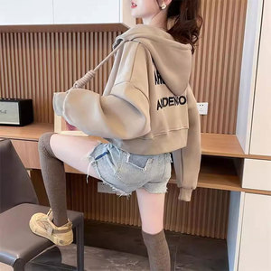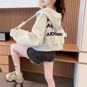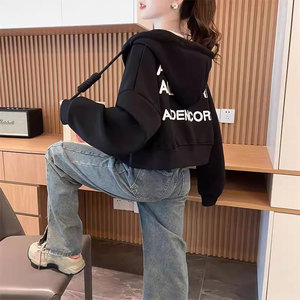 早秋薄款连帽开衫拉链卫衣外套女2025新款春秋季宽松大码短款上衣