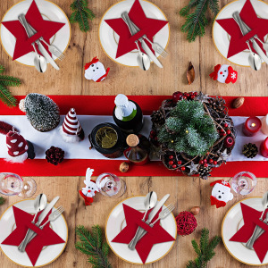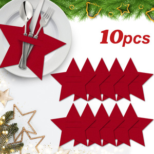 红色五角星餐具刀叉套圣诞平安夜餐桌装饰派对聚餐摆件收纳桌垫