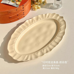 12寸花边鱼盘-奶白色
