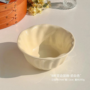 6寸花边饭碗-奶白色